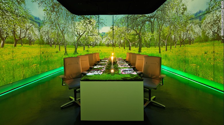 就餐前先來(lái)一頓視覺(jué)大餐吧! 通過(guò)裸眼3D投影技術(shù)在餐桌上投射出3D短片,不需要佩戴眼鏡即可體驗(yàn)3D效…