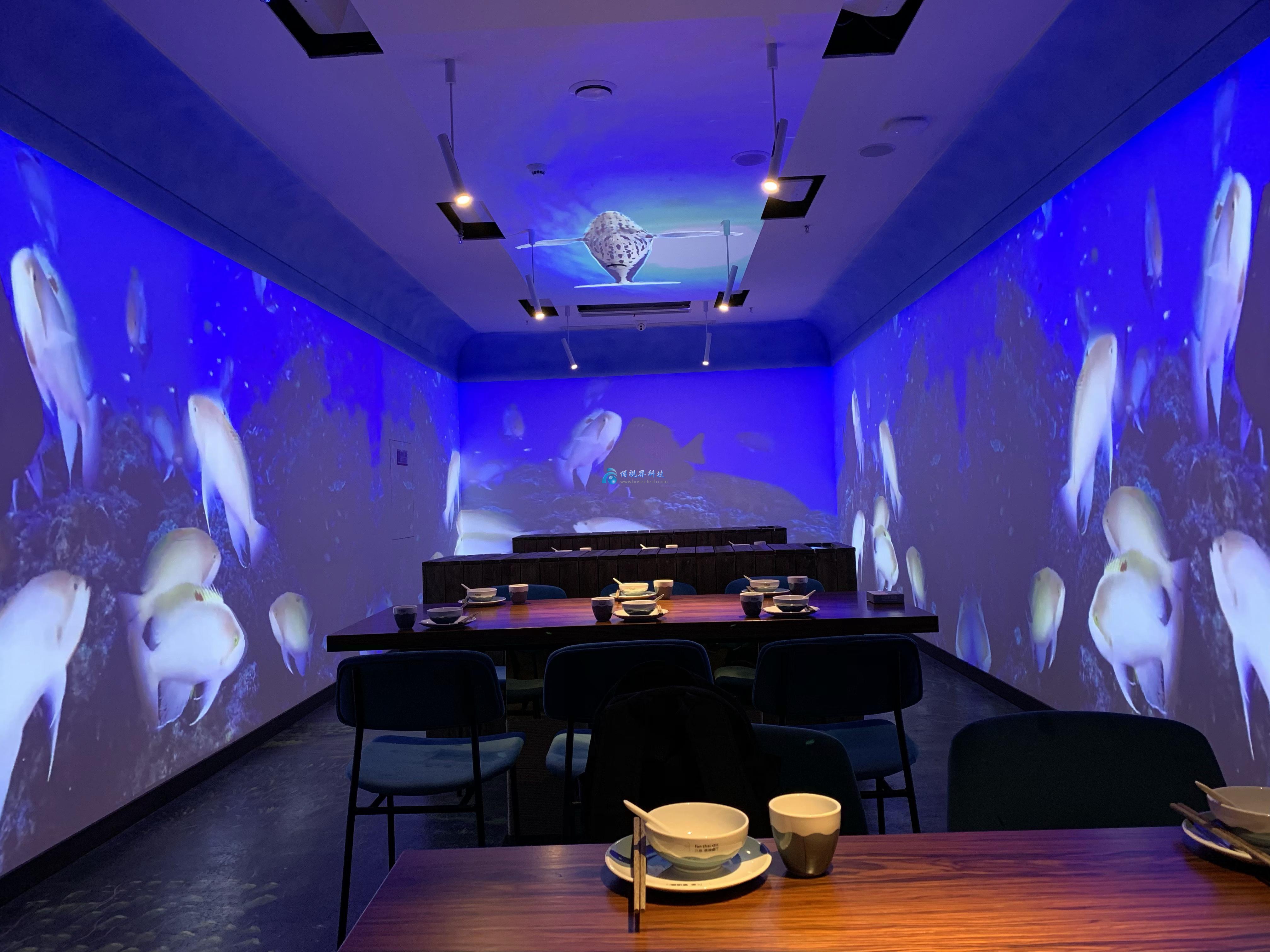 項(xiàng)目共使用五十余臺(tái)工程投影機(jī)為小梅沙海洋世界打造了11處光影展項(xiàng),借助沉浸式、互動(dòng)、折幕、弧幕等豐富的呈現(xiàn)形式,助力探索奇幻迷人的海洋奧秘。